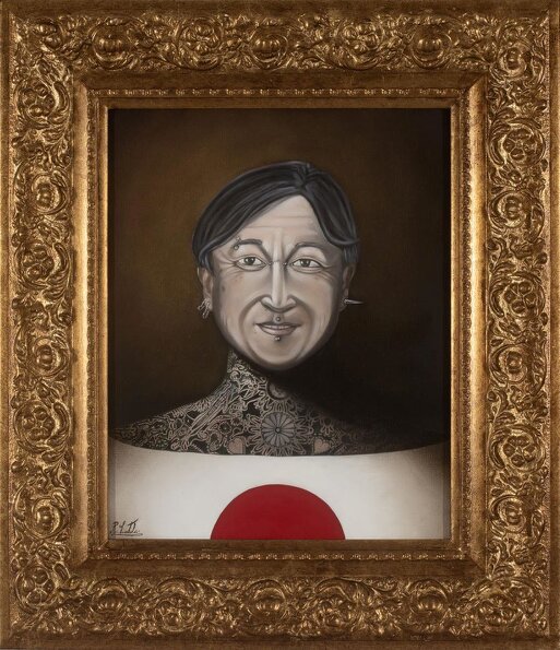 Titolo: Omaggio alla Nuova Era Reiwa "Il Maestro Raffaele Ciotola presenta un'opera unica dedicata a Sua Maestà Imperiale l'Imperatore Naruhito. Attraverso la tecnica della Finger Art e dello stile Rock Art, l'artista esprime un profondo rispetto per la cultura giapponese. I segni grafici sul volto non sono semplici decorazioni, ma simboli di protezione, energia vitale e un augurio di eterna armonia per il popolo giapponese. Un ponte d'arte che unisce l'Italia e il Giappone sotto il segno dell'amore universale."